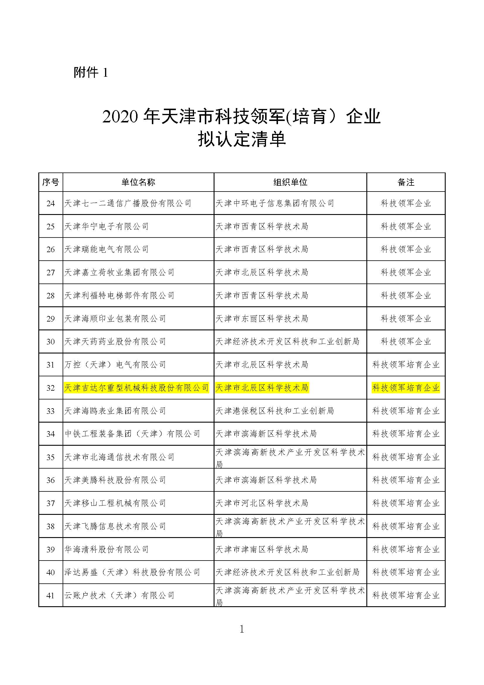 公司認(rèn)定天津市科技領(lǐng)軍培育企業(yè)