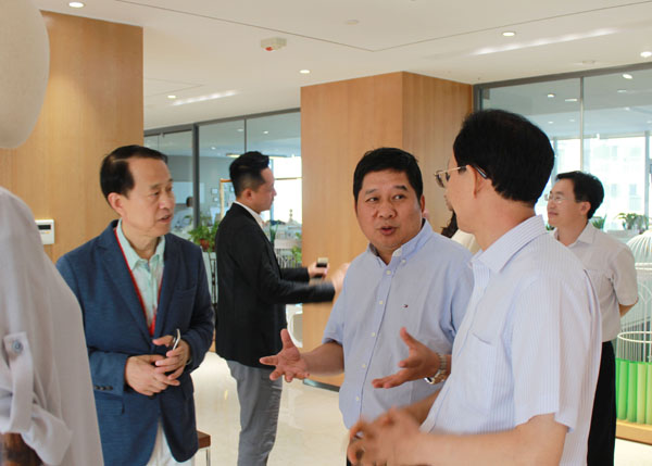 慕镕鍵董事長(zhǎng)陪同張耀平一行參觀了聯(lián)橋集團(tuán)總部,并對(duì)公司的發(fā)展情況進(jìn)行了介紹。張耀平對(duì)聯(lián)橋集團(tuán)多年以來(lái)穩(wěn)扎穩(wěn)打、穩(wěn)健發(fā)展表示肯定,對(duì)聯(lián)橋集團(tuán)以“感恩 責(zé)任”為核心價(jià)值觀的文化體系,建設(shè)幸福企業(yè)、誠(chéng)信立企的理念表示贊賞。慕镕鍵董事長(zhǎng)感謝農(nóng)業(yè)銀行多年以來(lái)的信任和支持,希望雙方可以進(jìn)一步加強(qiáng)合作,實(shí)現(xiàn)全面互利共贏。