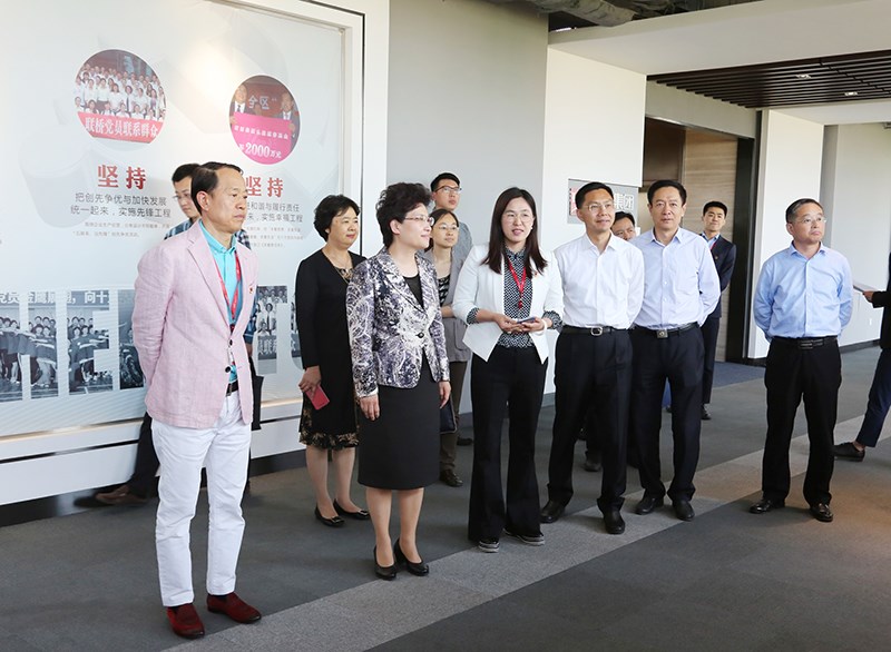 邢善萍部長一行在市工商聯副主席、聯橋集團董事長慕镕鍵的陪同下,參觀了聯橋集團服裝時尚館、新材料科技館、人力資源中心和統戰文化長廊,了解了公司時尚智造、工業科技和人力資源事業板塊的發展情況。高區工商聯執委、聯橋集團黨委副書記宋威麗匯報了公司“新階層 黨旗紅 聯心筑橋共圓夢”統戰工作品牌打造情況。