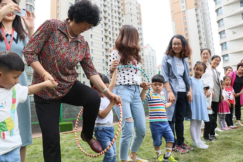 員工和孩子們手牽手站成兩列,分別傳遞呼啦圈。爸媽耐心為孩子們講解規則,孩子們幫著爸媽提高傳遞速度。這傳遞的不是呼啦圈,而是快樂和溫暖呀。